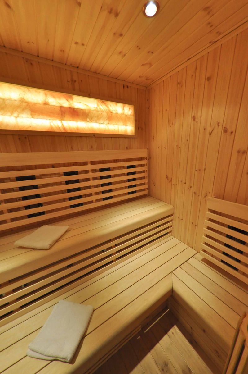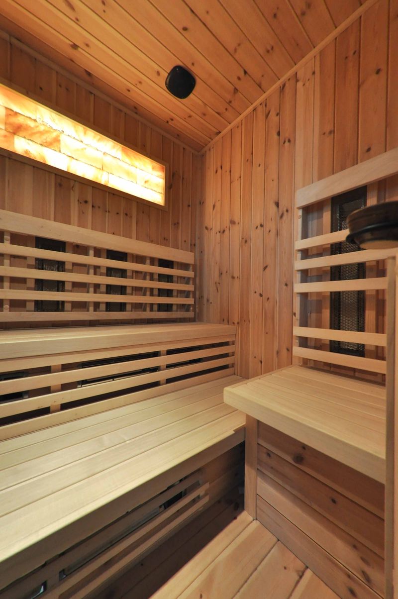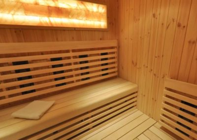 • Ideálním spojením, které ještě zesiluje pozitivní účinky infrasauny, je doplnění o solnou terapii. Tím se potící nebo prohřívací kúra spojuje s efektem solné jeskyně. Sůl prostor sauny přírodní cestou ionizuje, velmi příznivě působí na dýchací cesty, čistí organismus, působí hojivě, a v neposlední řadě pomáhá pokožce vylučovat toxiny z tě Množství soli je dáno velikostí prostoru sauny.